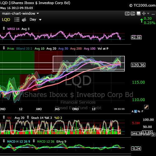 $LQD getting a nice bounce today. but beware of head and shoulders that has emerged in the box drawn below.